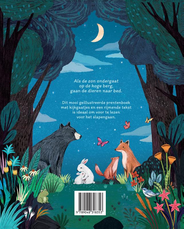 Als de zon ondergaat op de hoge berg, gaan de dieren naar bed.Dit mooi geïllustreerde prentenboek met kijkgaatjes en een rijmende tekst is ideaal om voor te lezen voor het slapengaan.