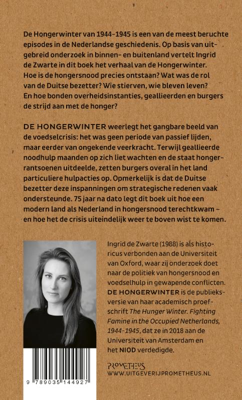 De Hongerwinter van 1944-1945 is een van de meest beruchte episodes in de Nederlandse geschiedenis. Op basis van uitgebreid onderzoek in binnen- en buitenland vertelt Ingrid de Zwarte in dit boek het verhaal van de Hongerwinter. Hoe is de hongersnood precies ontstaan? Wat was de rol van de Duitse bezetter? Wie stierven, wie bleven leven? En hoe bonden overheidsinstanties, geallieerden en burgers de strijd aan met de honger?