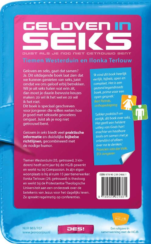 Wil je uit seks halen wat erin zit, dan moet je daarin bewuste keuzes maken: zó wil ik het wel en zó wil ik het niet. Dat is het uitgangspunt van dit uitdagende boek. Geloven in seks laat zien dat we kunnen genieten van seks juist omdat we ons geloof erbij betrekken. Het is speciaal geschreven voor jongeren die (gezien hun lichamelijke ontwikkeling) toe zijn aan een seksuele relatie, maar die in de meeste gevallen nog niet hebben ? of niet geacht worden te hebben. Geloven in seks biedt veel praktische informatie en duidelijke bijbelse richtlijnen, gecombineerd met de nodige humor.