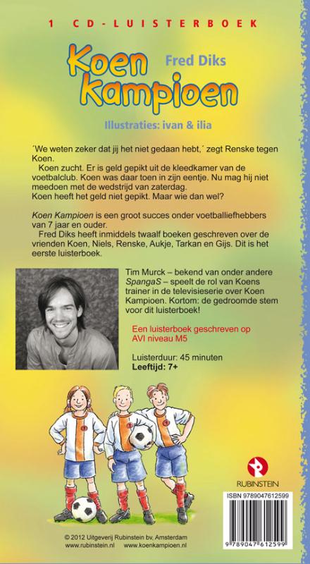 Er is geld gepikt uit de kleedkamer van de voetbalclub. Koen was daar toen in zijn eentje. Nu mag hij niet meedoen met de wedstrijd van zaterdag. Koen heeft het geld niet gepikt. Maar wie dan wel? ´We weten zeker dat jij het niet gedaan hebt,´ zegt Renske tegen Koen. Koen zucht. Er is geld gepikt uit de kleedkamer van de voetbalclub. Koen was daar toen in zijn eentje. Nu mag hij niet meedoen met de wedstrijd van zaterdag. Koen heeft het geld niet gepikt. Maar wie dan wel?Koen Kampioen is een groot succes onder voetballiefhebbers van 7 jaar en ouder. Fred Diks heeft inmiddels twaalf boeken geschreven over de vrienden Koen, Niels, Renske, Aukje, Tarkan en Gijs.Tim Murck – bekend van onder andere SpangaS – speelt de rol van Koens trainer in de televisieserie over Koen Kampioen. Kortom: de gedroomde stem voor dit luisterboek!Een luisterboek geschreven op AVI niveau M5
