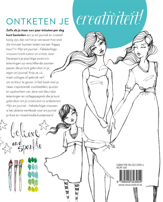 Zelfs als je maar een paar minuten per dag kunt besteden aan je art journal en creatief bezig zijn, dan zal het je verrassen hoe snel die minuten kunnen leiden tot een ‘happy hour’! In Mijn art journal – Fabelachtige vrouwen biedt auteur en artiest Jane Davenport je prachtige zwart-wittekeningen op verschillende soorten papier, die je kunt gebruiken in je eigen art journal. Knip ze uit, maak collages of gebruik verf om ze kleur te geven. In het boek vind je naast inspirerende voorbeelden, quotes en opdrachten van Jane ook kleurrijke tekeningen en collagepagina’s die je kunt gebruiken om je creativiteit te ontketenen. Mijn art journal – Fabelachtige vrouwen is het ultieme werkboek voor art journal junkies en mixed-media kunstenaars!