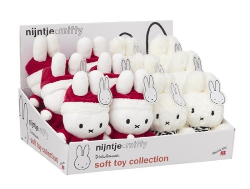 Deze display is exclusief voor de boekhandel geproduceerd en bestaat uit totaal zestien zachte nijntje knuffelrammelaars van 15 cm hoog in de originele Dick Bruna kleuren rood en blauw.